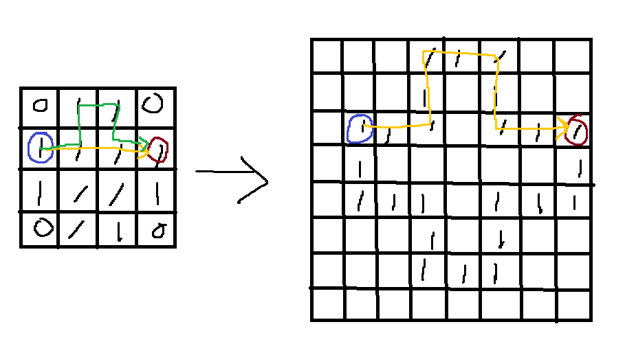 핵심 아이디어는 지도를 만들 때 원래 좌표에 2배를 해주는 것이다.